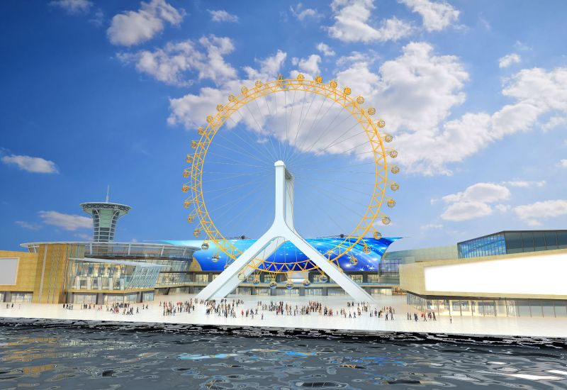 項目亮點:該設(shè)備是國內(nèi)第三臺108米人字支撐全拉索結(jié)構(gòu)高端定制摩天輪。